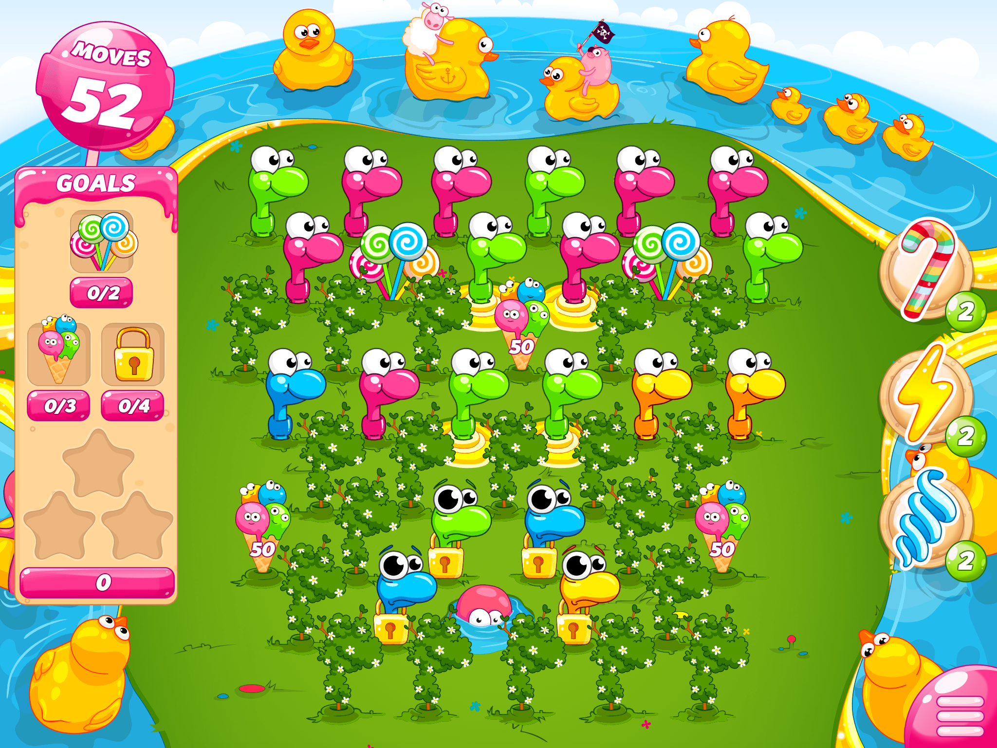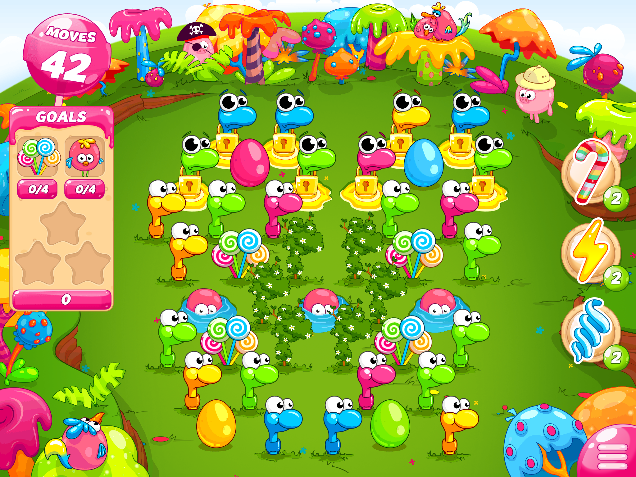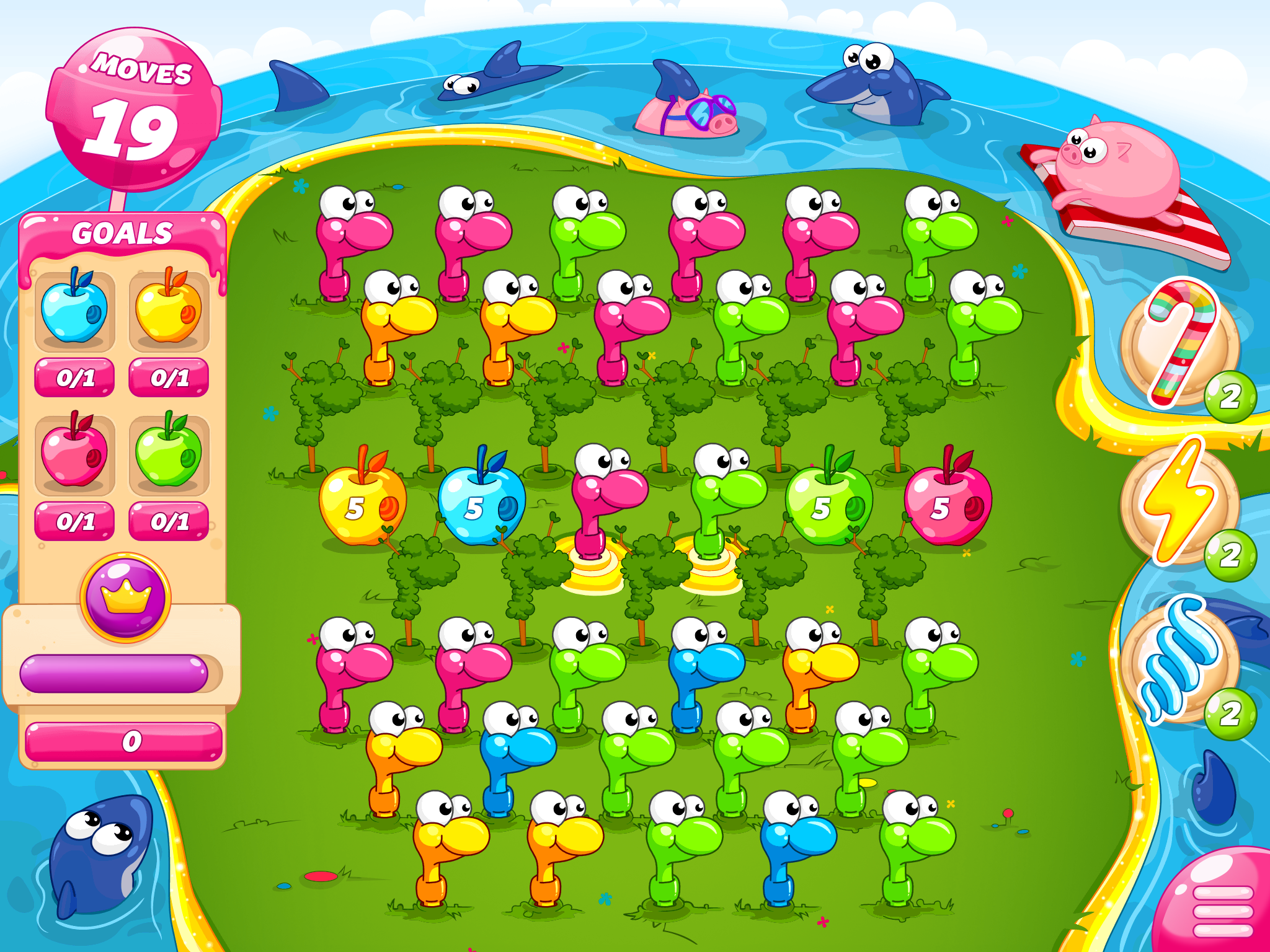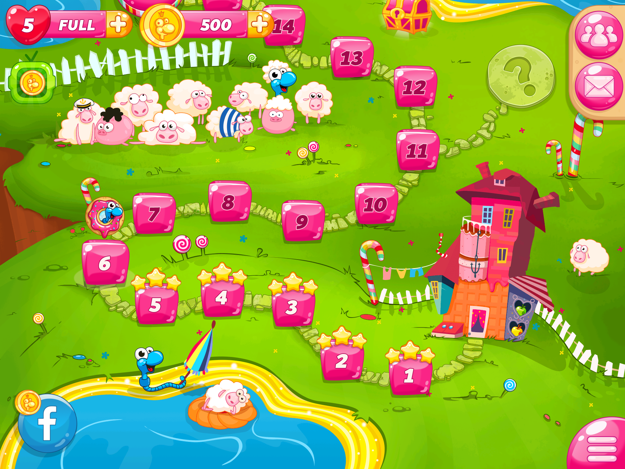 DESCRIPTIONSugar Worms is a casual, free-to-play puzzle mobile game, introducing never seen before twists of the popular line-matching gameplay. The game sees players connecting worms to remove them from screen and get them replaced by new worms that appear in their place. This is in contrast to the usual gravity that is used to reorder the field and proved to be much more addicting for laying greater emphasis on the element of luck. As a result players are now allowed to make a move before the previous one has finished, getting over the most tedious restriction that usually slows down the gameplay of other puzzle games. HISTORYThe worms, the main characters of the game, were originally created for another game that was in the works where they were going to play a supporting role but the team loved them so much that they decided to dedicate them their own game. Aiming for the best possible interaction with the worms the team ended up with the line-matching mechanic. The game was soft launched for 4 months in Canada, New Zealand and several other territories during which time based on the input of the players were added some of its most distinctive features, the Champion mode and the Trophy levels. FEATURES