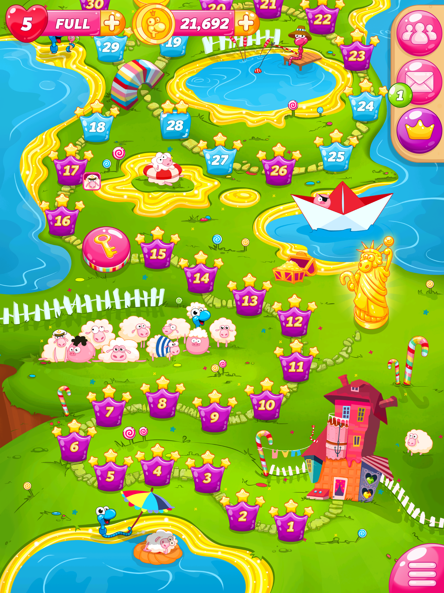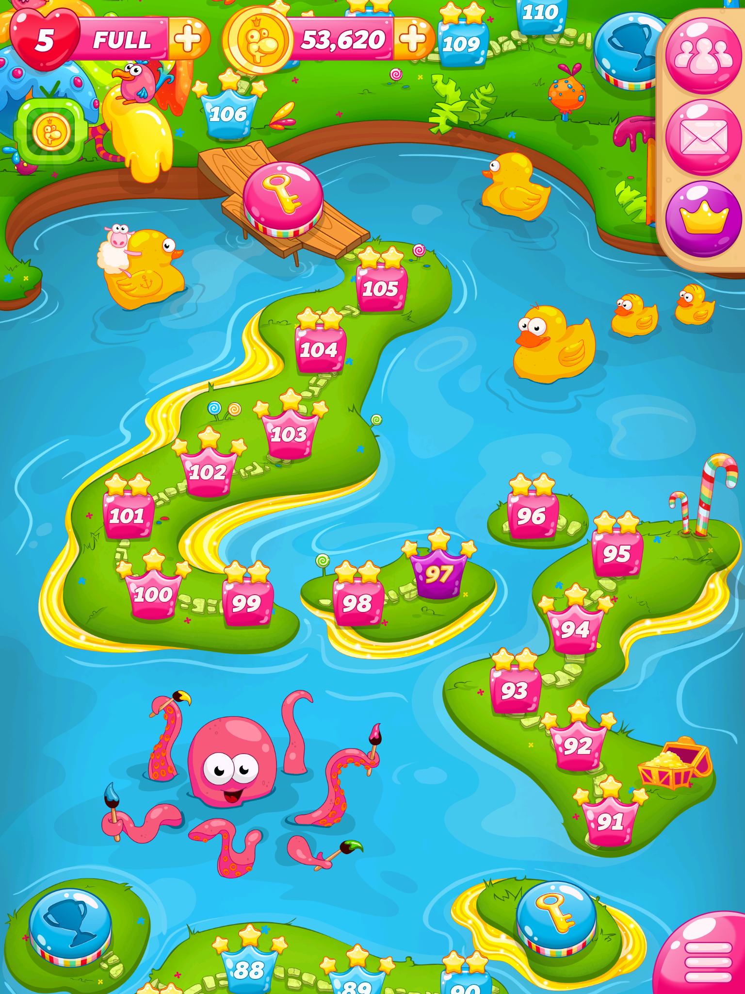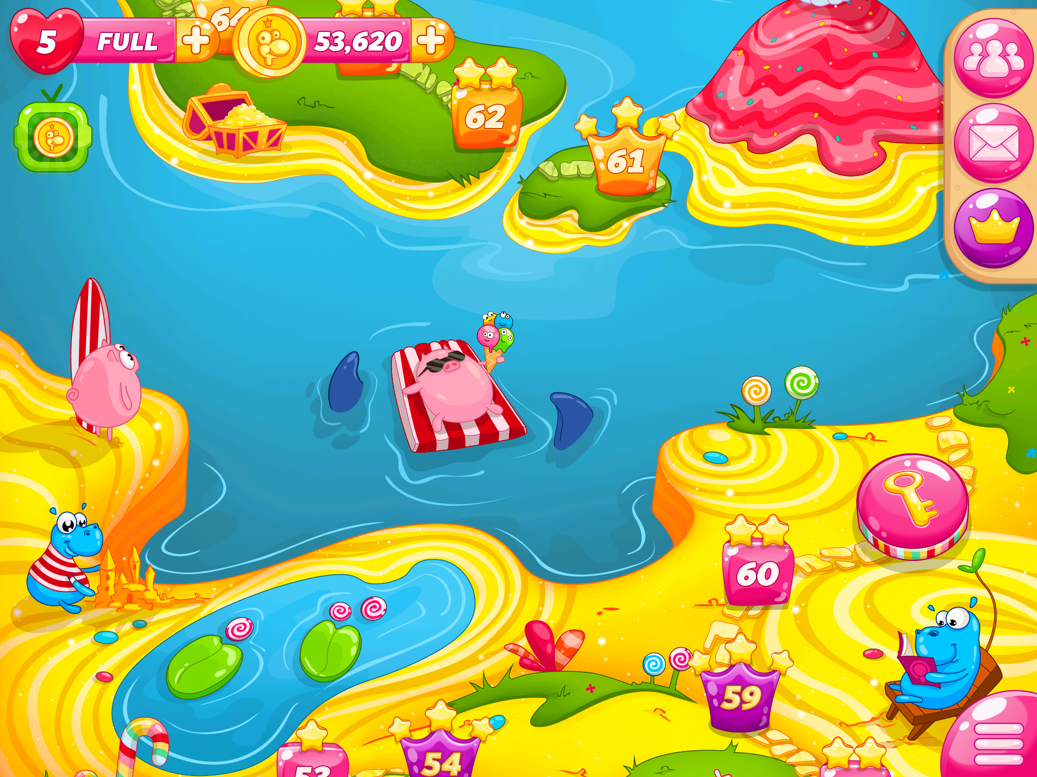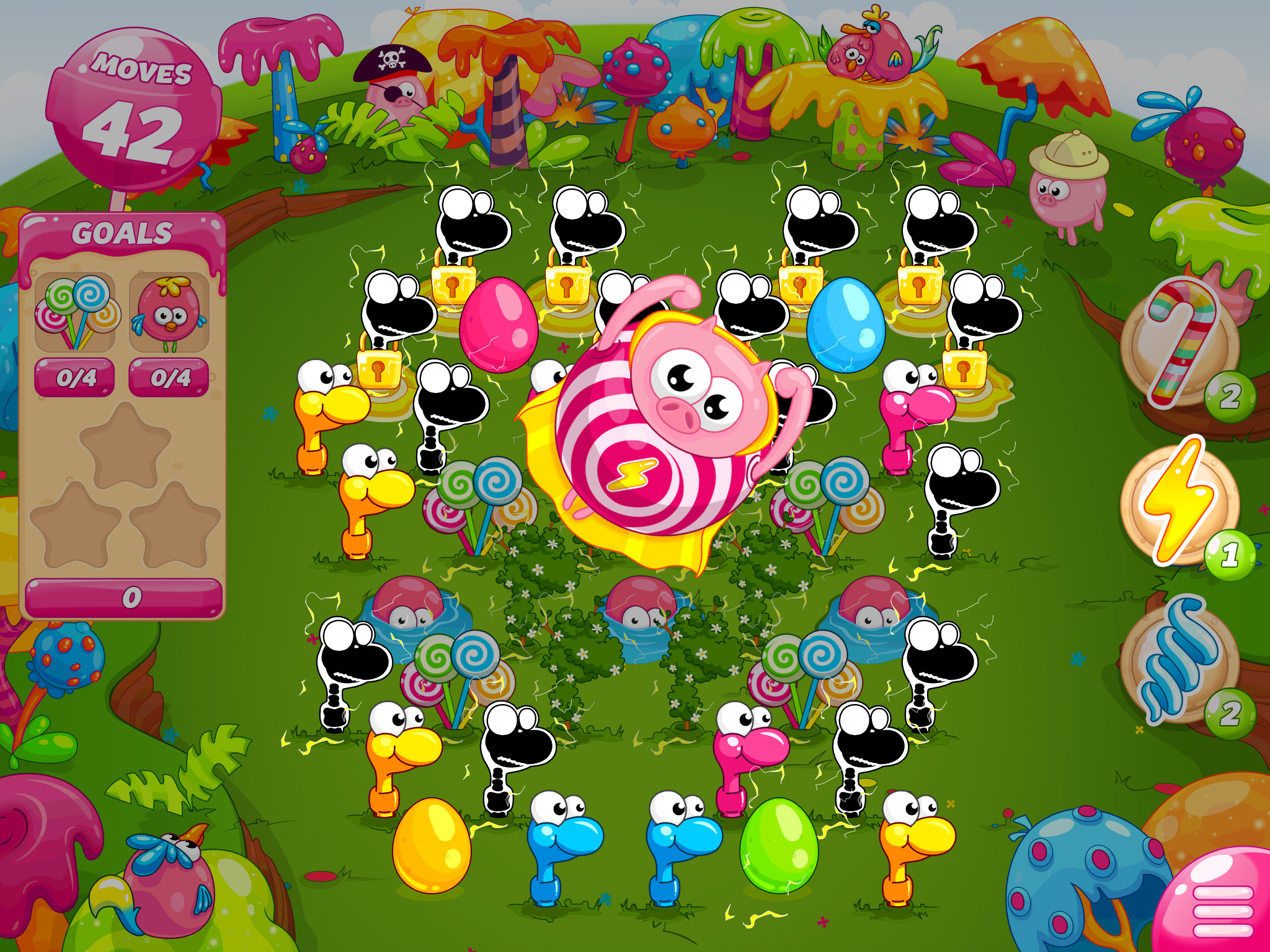 DESCRIPTIONSugar Worms is a casual, free-to-play puzzle mobile game, introducing never seen before twists of the popular line-matching gameplay. The game sees players connecting worms to remove them from screen and get them replaced by new worms that appear in their place. This is in contrast to the usual gravity that is used to reorder the field and proved to be much more addicting for laying greater emphasis on the element of luck. As a result players are now allowed to make a move before the previous one has finished, getting over the most tedious restriction that usually slows down the gameplay of other puzzle games. HISTORYThe worms, the main characters of the game, were originally created for another game that was in the works where they were going to play a supporting role but the team loved them so much that they decided to dedicate them their own game. Aiming for the best possible interaction with the worms the team ended up with the line-matching mechanic. The game was soft launched for 4 months in Canada, New Zealand and several other territories during which time based on the input of the players were added some of its most distinctive features, the Champion mode and the Trophy levels. FEATURES